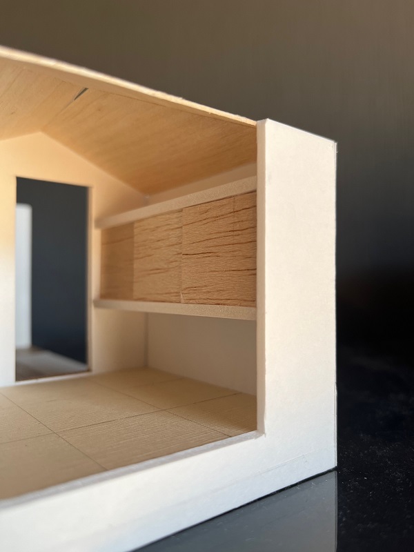 また子供達のスペ-スは白い空間の中で、自分の領域を認識できるように同じ木質系の素材で囲うように仕上げます。